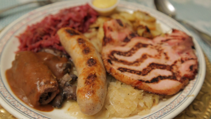 Our Special GERMAN SAMPLER- Beef Roulade, Bavarian Bratwurst, Smoked Pork Chop.